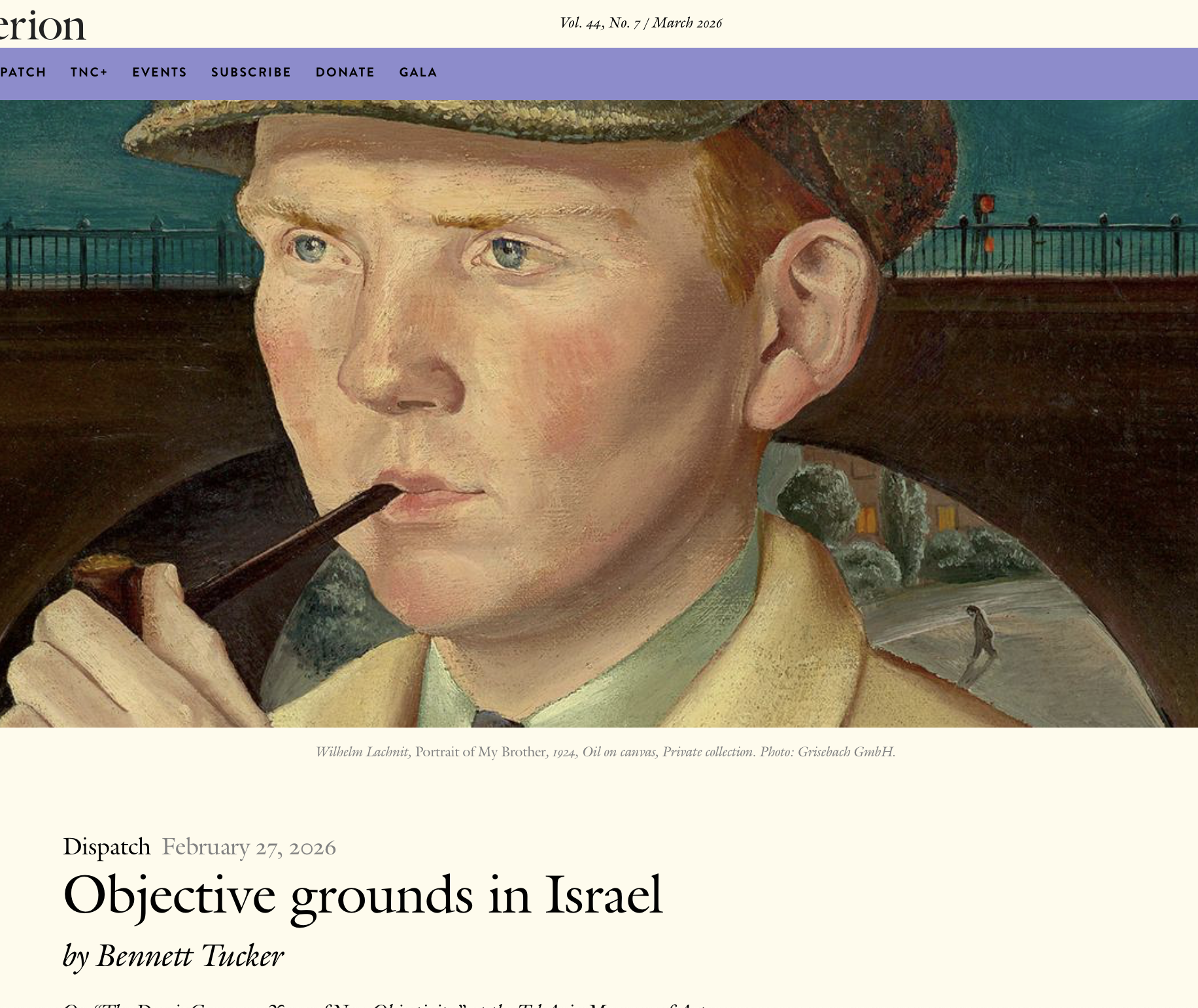 Bennett Tucker writes on The remarkable resilience of Israeli Art. Iranian Missiles Challenge Israel’s Air Defense Systems. How Artificial Intelligence (AI) is reshaping the Iran War. Handling the resurrection. Concert review of George Frideric Handel’s La ressurezione, performed by Barrocade in Haifa, Israel. The New Israel-Hezbollah War, now a '“coequal” front with Iran. Objective grounds in Israel: Exhibition Review of “The Day is Gone: 100 Years of New Objectivity” at the Tel Aviv Museum of Art. view more …
